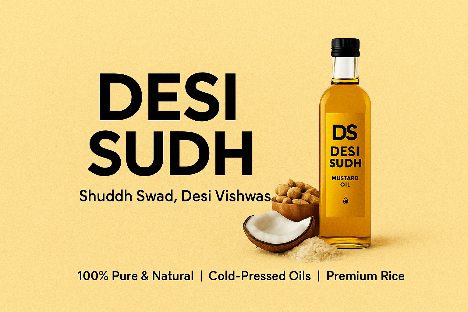 Desi Sudh 1L Kachi Ghani Mustard Oil | Cold Pressed | 100% Pure & Natural Sarson Tel
